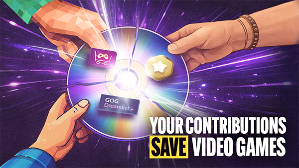 Whether it is joining GOG Patrons, voting and sharing stories on the GOG Dreamlist, or simply choosing DRM-free gaming and buying on our platform, you fuel our video game preservation efforts. |